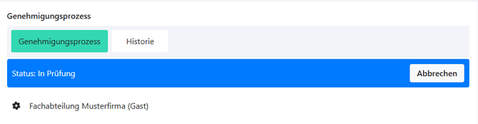 Dabei können sowohl bestehende Talention-Nutzer als auch neu angelegte Nutzer als Prüfer definiert werden. Mit einem Klick auf „Prozess starten“ wird der Genehmigungsprozess initiiert. Die Übersicht aktualisiert sich daraufhin und zeigt an, dass sich die Anforderung aktuell in der Prüfung befindet.