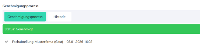 Nach einer Genehmigung wird der Status der Anforderung entsprechend auf „Genehmigt“ gesetzt.